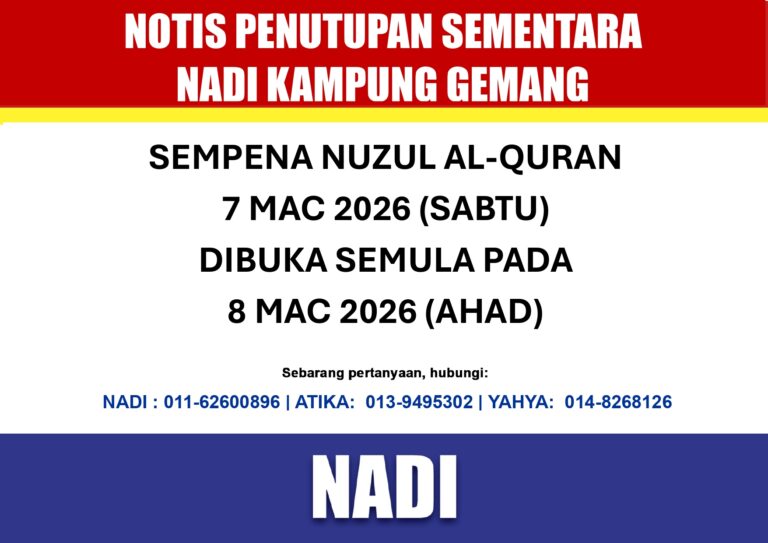 NOTIS PENUTUPAN SEMENTARA NADI SEMPENA NUZUL AL-QURAN